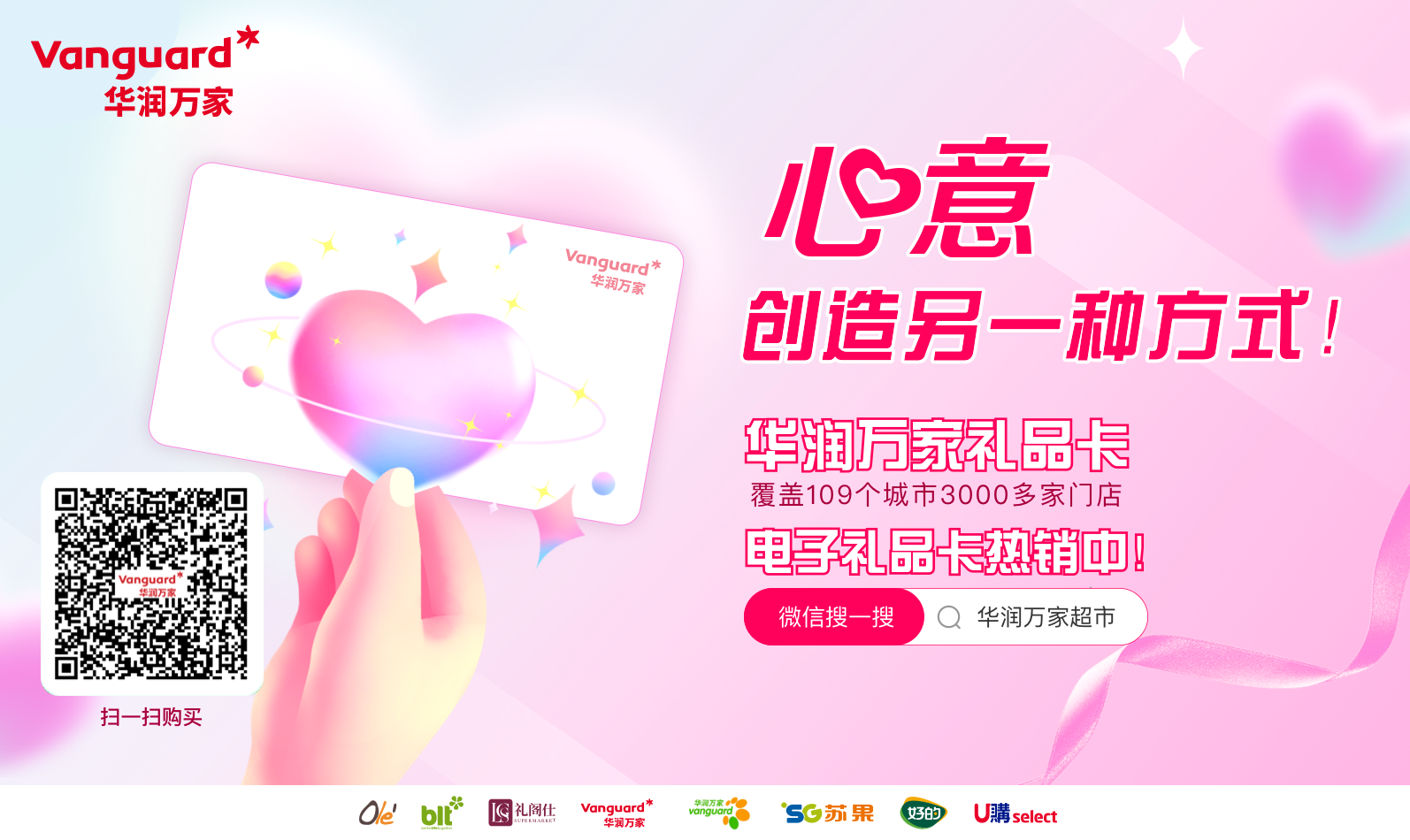 品牌包括华润万家、苏果、万家MART、Olé、blt、万家LIFE、乐购express、V>nGO等,覆盖全国3000多家门店,是发放员工福利、表达心意的理想选择。