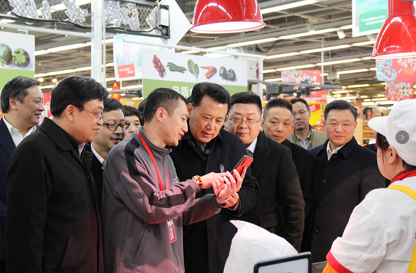 1月21日,江西省副省长吴忠琼一行到华润万家南昌红谷滩店进行视察,详细了解了红谷滩店的经营情况、商品结构及春节期间政府储备肉投放情况等,并对红谷滩店突出的经营业绩及春节物资储备给予了表扬。同日,浙江省省长袁家军一行到华润万家杭州云河店视察节前安全生产和食品安全工作,详细了解了云河店政府储备猪肉的投放安排、销售情况及肉品流通追溯等食品安全工作,并对云河店节前市场供应保障工作给予肯定。