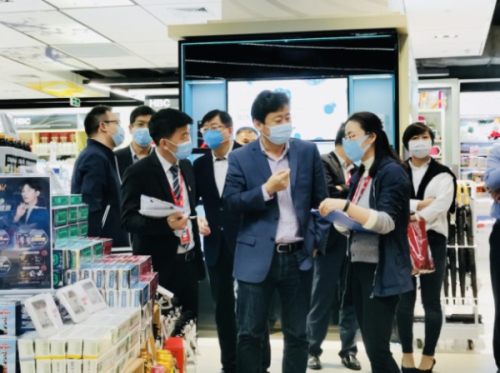 3月31日,华润万家总经理徐辉、副总经理刘志文、纪委书记杨坤等一行到广州大卖场萝岗店、标超华景逸雅店、Olé太古汇店以及广州干货DC调研疫情防控及复工复产工作。