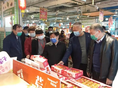 江苏省副省长赵世勇一行莅临华润苏果浦珠北路购物广场调研,对华润苏果保供稳价、疫情防控等各项工作进行考察,并向全体员工表示节日的慰问。赵世勇指出,去年,苏果在疫情防控和保供稳价方面做得很好,帮助宁夏、贵州等地销售了不少农产品,体现了国企的责任担当。他希望苏果继续履行好政治责任和社会责任,进一步做好疫情防控、保供稳价工作,为人民群众欢度春节提供服务保障。