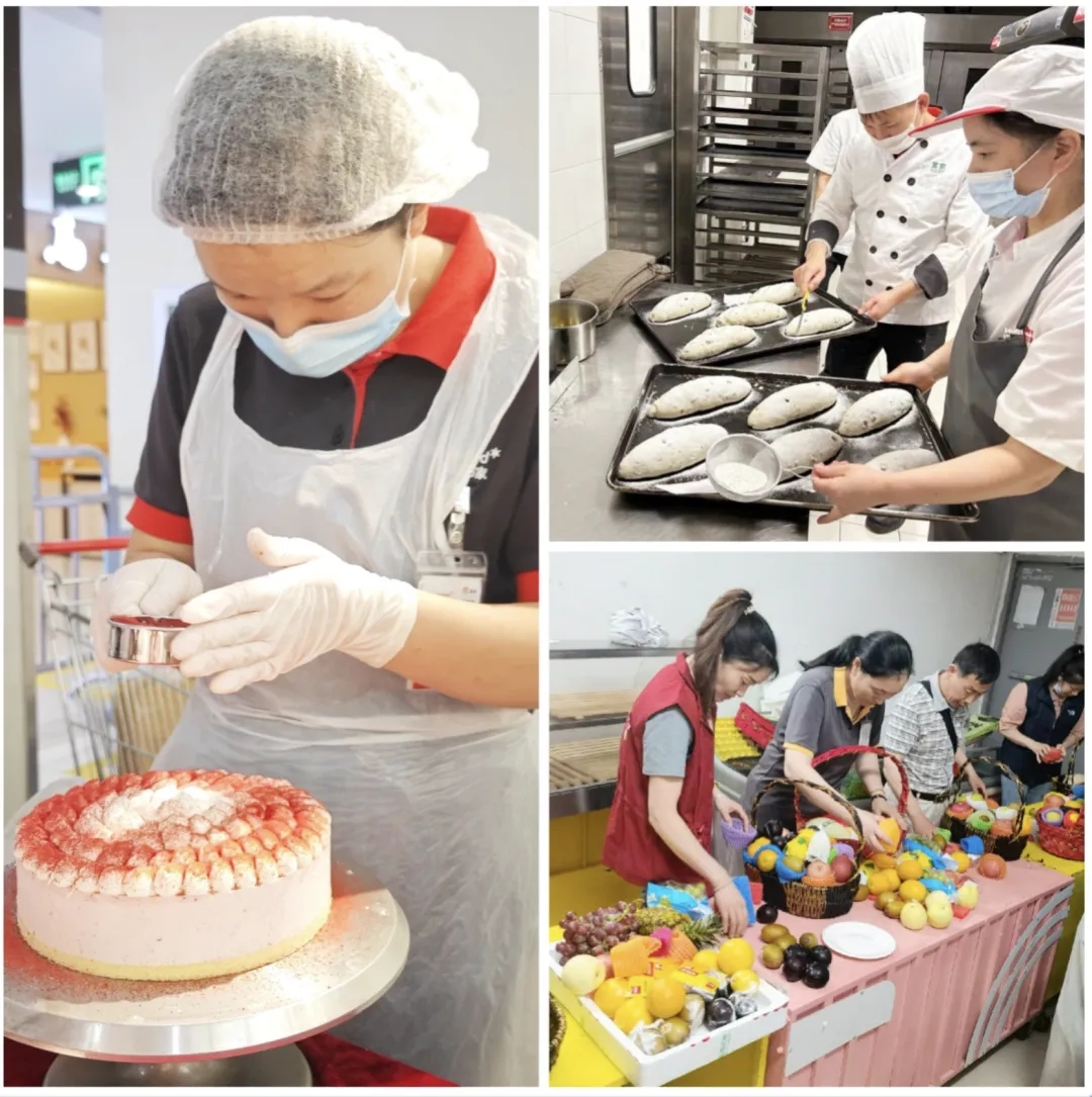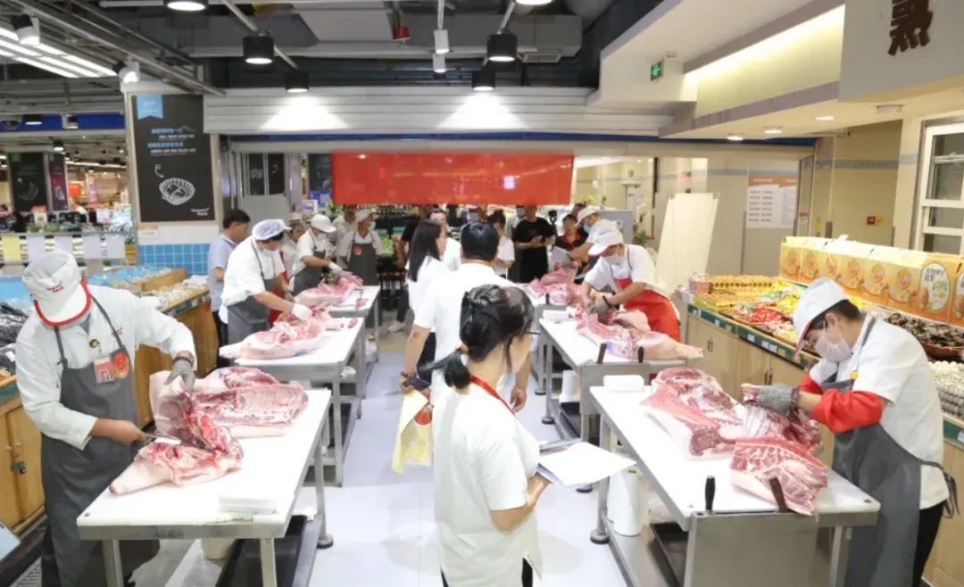 除了鲜肉分割外,技能竞赛还包括有面点、烘焙、轻食、果切、陈列、收银、物流等项目。