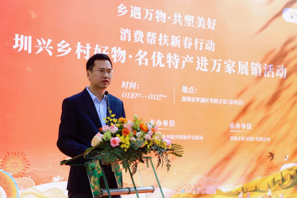 1月10日,广东省“消费帮扶新春行动”暨“圳兴乡村好物·名优特产进万家”展销活动启动仪式在深圳圆满举办,深圳市乡村振兴和协作交流局副局长黄建洪、华润万家副总经理徐之江出席活动。