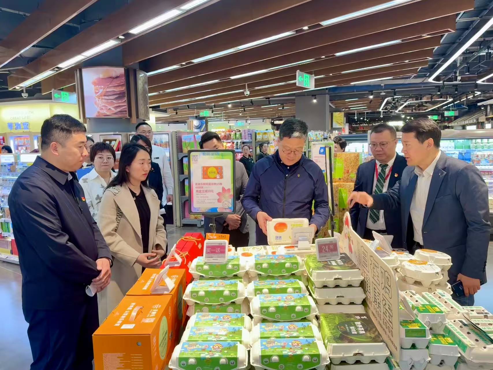 蓝屹总深入了解了鲜食、面包、酒窖、母婴等品类的经营状况,并重点关注门店经营数据与核心品类表现,以及商场定位、业绩增长情况。蓝屹总对门店调整后的品类表现给予肯定,并提出工作要求:一是Olé自有品牌要打造精品,持续推陈出新,门店要关注自有品牌新品呈现;二是提高加工美食丰富度,持续强化卖场烟火气;三是酒窖坪效需要持续优化,坚持提高西式美食经营专业性;四是加快宠物经济与银发经济商品开发,关注日本银发产品;五是持续拓展门店经营渠道,强化现场互动体验,服务好目标顾客;六是在经营中要持续保持差异化和品牌调性,巩固高净值客群黏性。