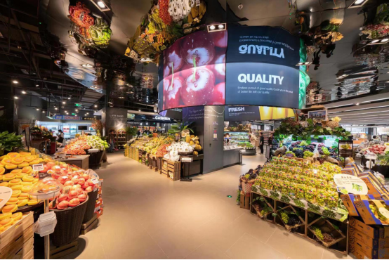 记者在Olé济南万象城店走访看到,新店商品品类十分齐全,包括母婴专区、西式美食专区、健康护理专区及家庭粮油用品专区等。此外,在超市入口不远处,汇聚着各式有机蔬菜、新鲜水果的鲜食专区也格外亮眼,来自秘鲁的蓝莓、泰国的红宝石柚、马来西亚的猫山王榴莲等应季果品一应俱全。