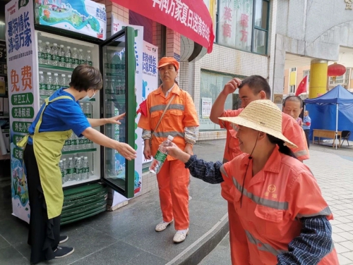 据了解,此次活动,是华润万家陕西公司携手华润怡宝饮料(中国)有限公司陕西大区联合开展,在华润万家陕西省内18家大卖场、22家标超便利店设置自助取水点,供环卫工人、交警、巡警、城管人员、外卖员、快递员、建筑工人等高温户外工作者自行拿取饮用。