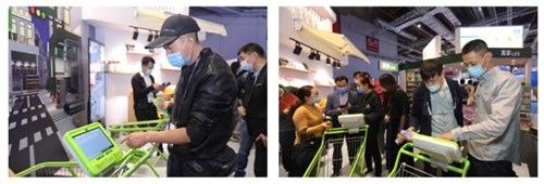华润万家在展位现场提供的沉浸式购物场景,最重要的是让观众能亲身体验其中运用的最前沿的零售电子化智能设备,包括具备影像识别功能的AI自助称重台、边购物边结账的智能购物车等,而货架上装置的动态条形屏和电子价签等设备更是吸引了众多观众的仔细观摩。