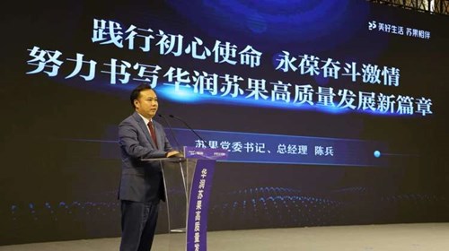 “践行初心使命、永葆奋斗激情,努力书写华润苏果高质量发展新篇章。”华润苏果党委书记、总经理陈兵在大会报告中,深情回顾质朴赤诚的创业初心和筚路蓝缕的奋斗历程,描绘未来高质量发展的“苏果蓝图”。