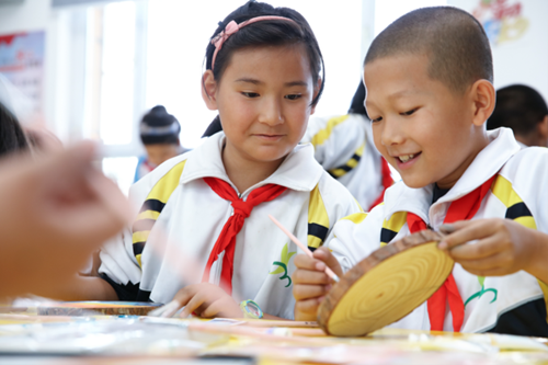 大自然的馈赠给美术课堂带来全新的体验,也让孩子们进一步感受到了美术的魅力和乐趣。美术课上,孩子们以木头为画布,用彩色画笔描绘出了家乡的各种美景:布满星星的夜空、牛羊成群的草原、香甜可口的瓜果蔬菜……“我从来没有想过,原来木头上也能画画。这样的美术课很有意思。”孩子们对此兴奋不已。